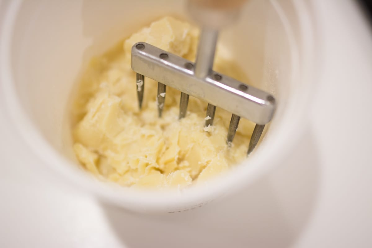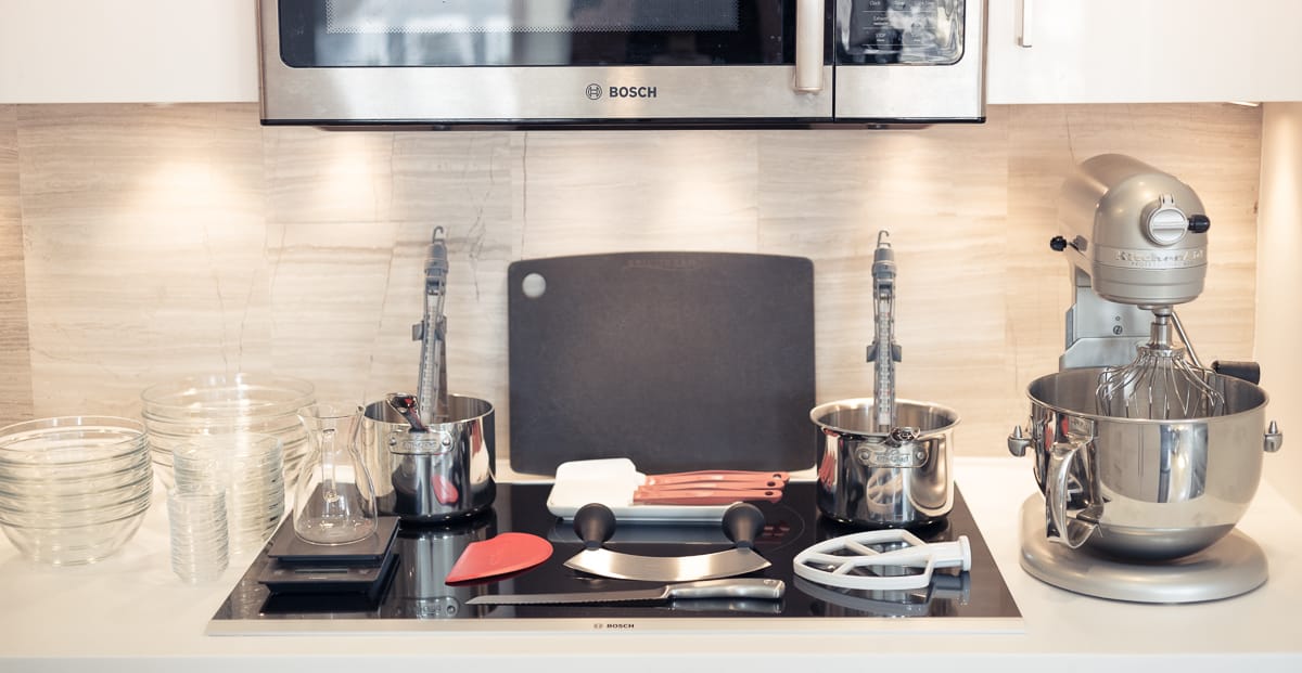 You'll also want to have spatulae (in case you need to scrape down the sides of the mixer bowl) and the flat beater attachment at the ready near the mixer.