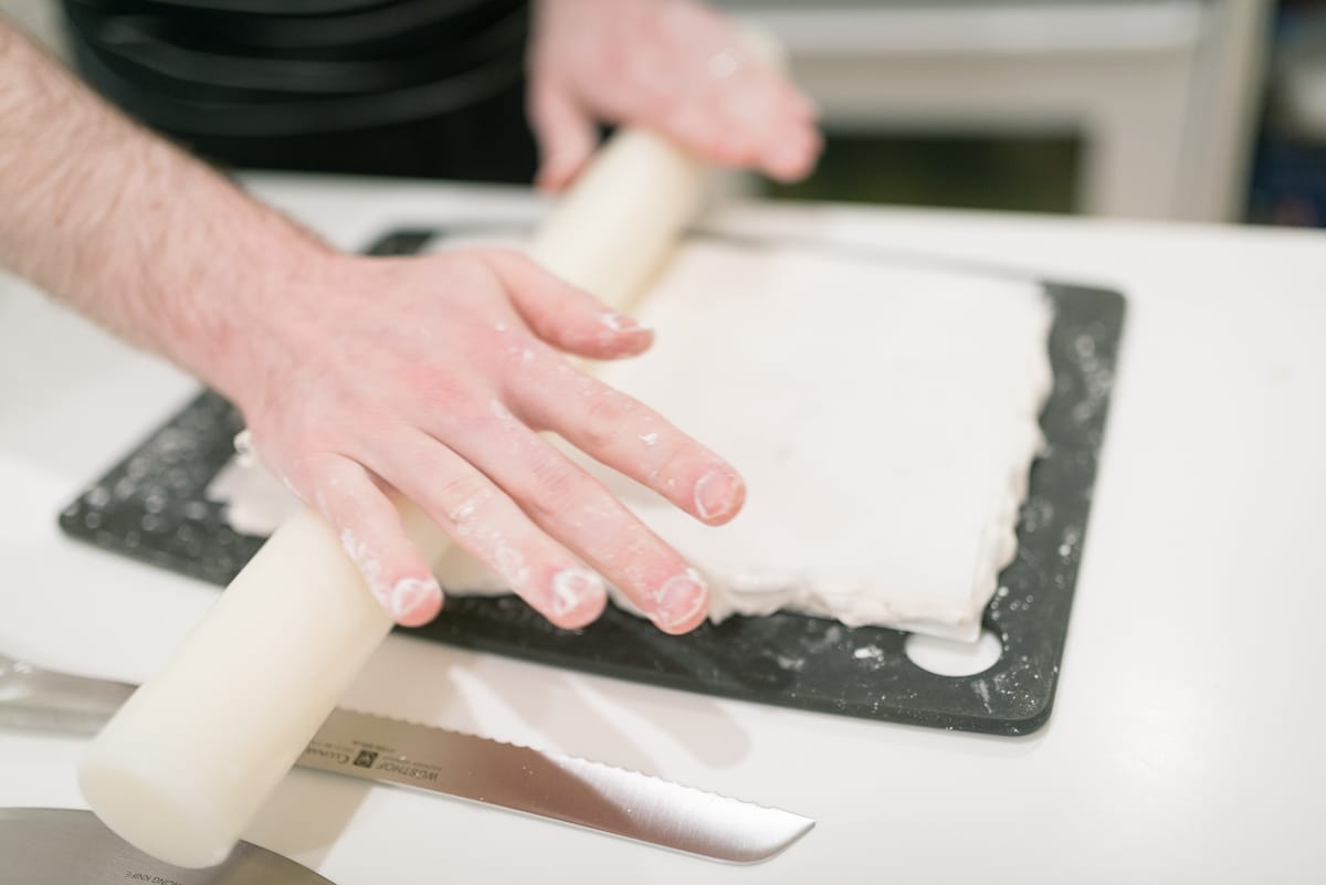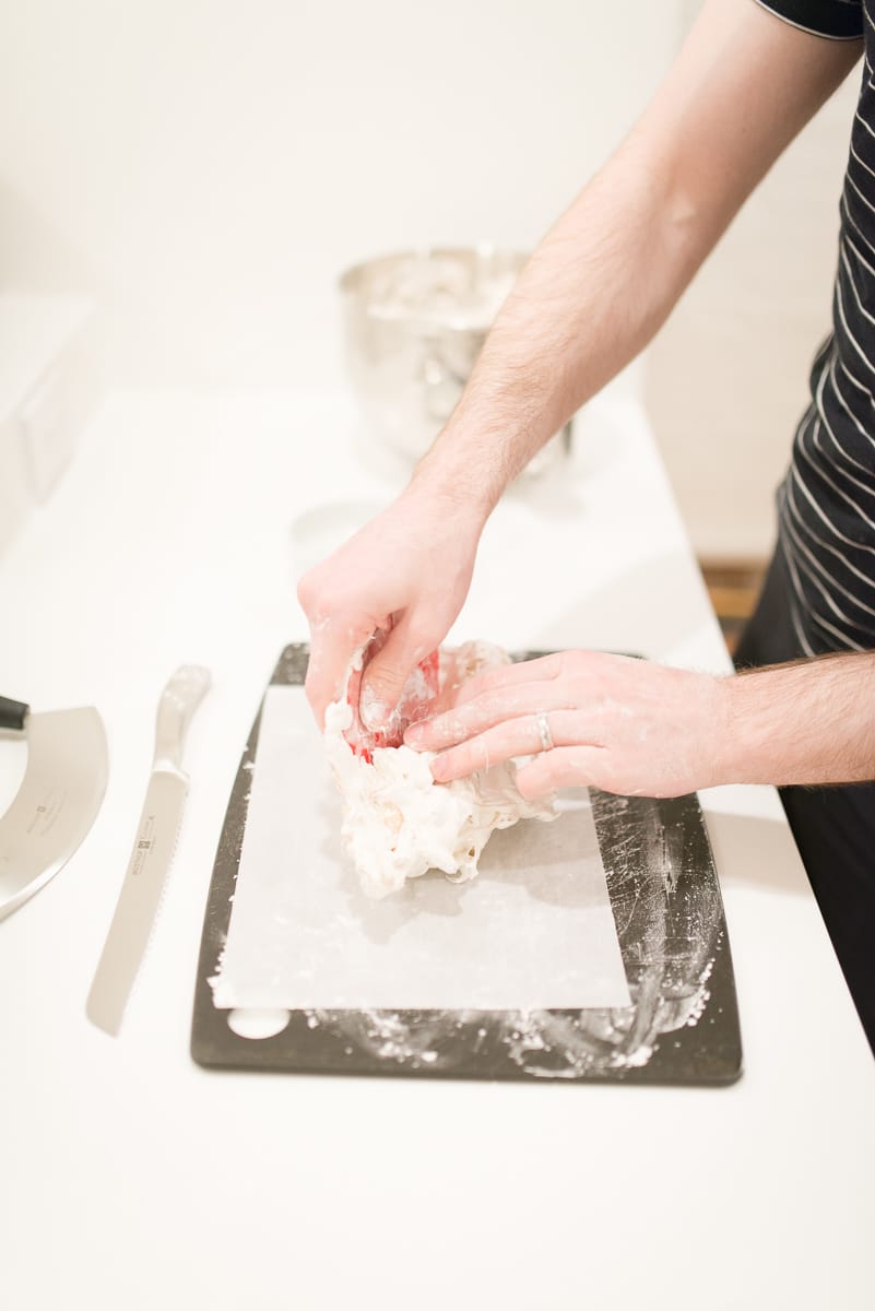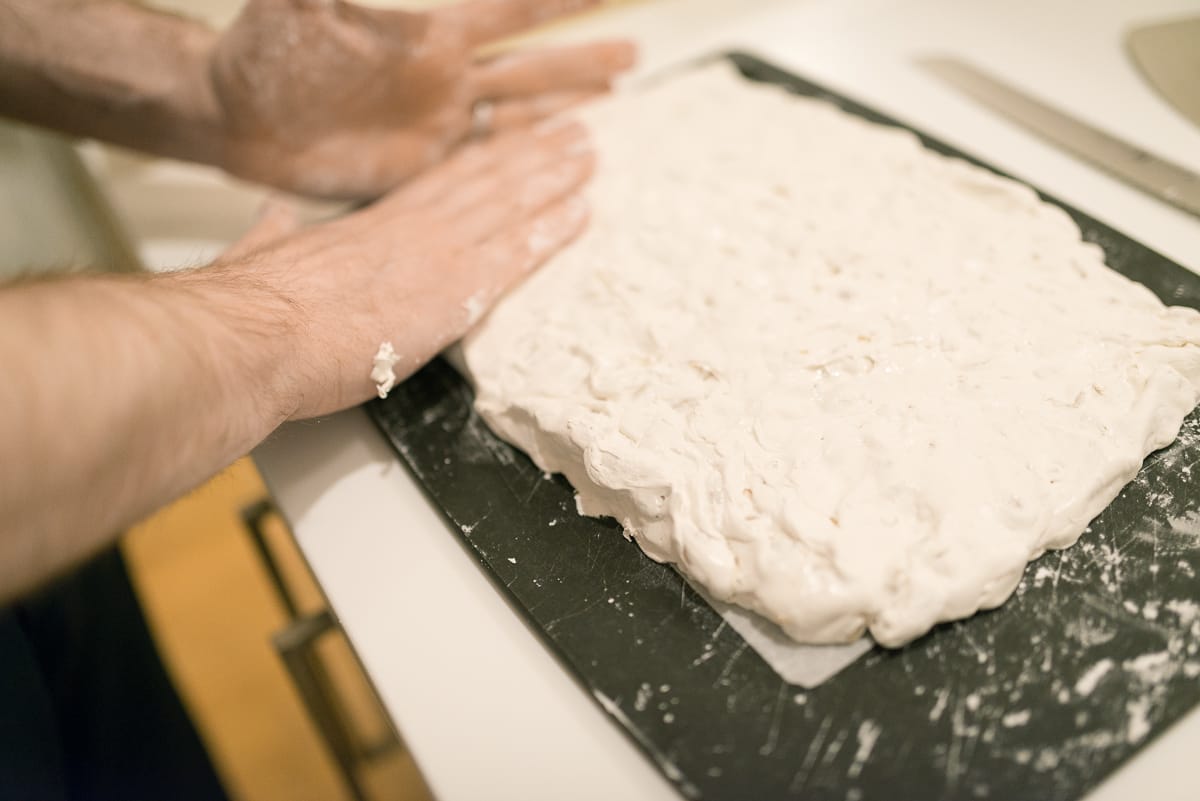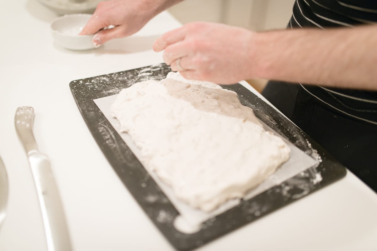 Have a bowl of cornstarch nearby for quickly re-coating things, especially your hands, in the heat of the moment. Dust your bowl scraper and cutting board in cornstarch also.