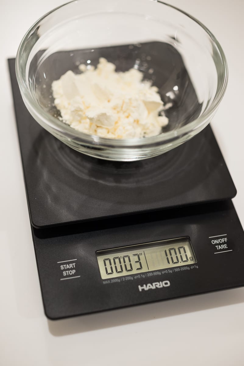 This precision scale from Hario, Japan is one of the best I've found. Unlike lesser units, the Hario uses 0.5g increments and actually smoothly registers weight changes as you gradually stream continuous substances like glucose syrup onto the balance. I have used home digital kitchen scales that, while fine at measuring a single discrete object placed on them, simply aren't up to the task of continuously registering gradual weight changes. They would tend instead to jump up in large increments, causing me to overshoot the intended weight target. The Hario is intentionally built with high fidelity/granularity in mind.