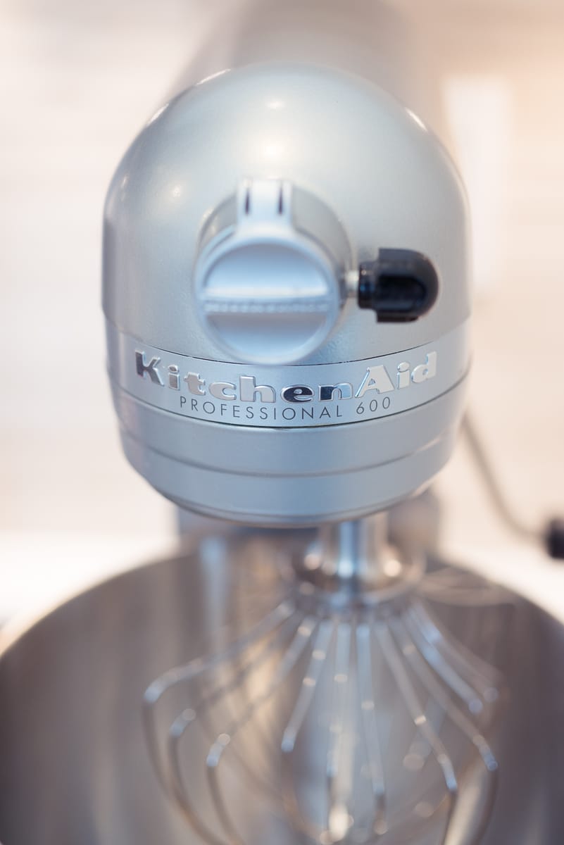 6-quart stand mixer (KitchenAid, USA) Given the high viscosity of nougat once the sugar is added, you'll fare much better with a heavy-duty pro mixer like the 6-quart than the lower-end KitchenAids.