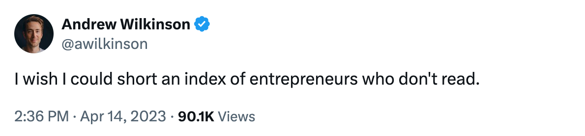I was particularly pleased to observe that deep thinking, rationality, and reading all seemed to be explicitly baked into Tiny’s culture. Andrew, incidentally, has my all-time favorite Tweet on business or investing:
