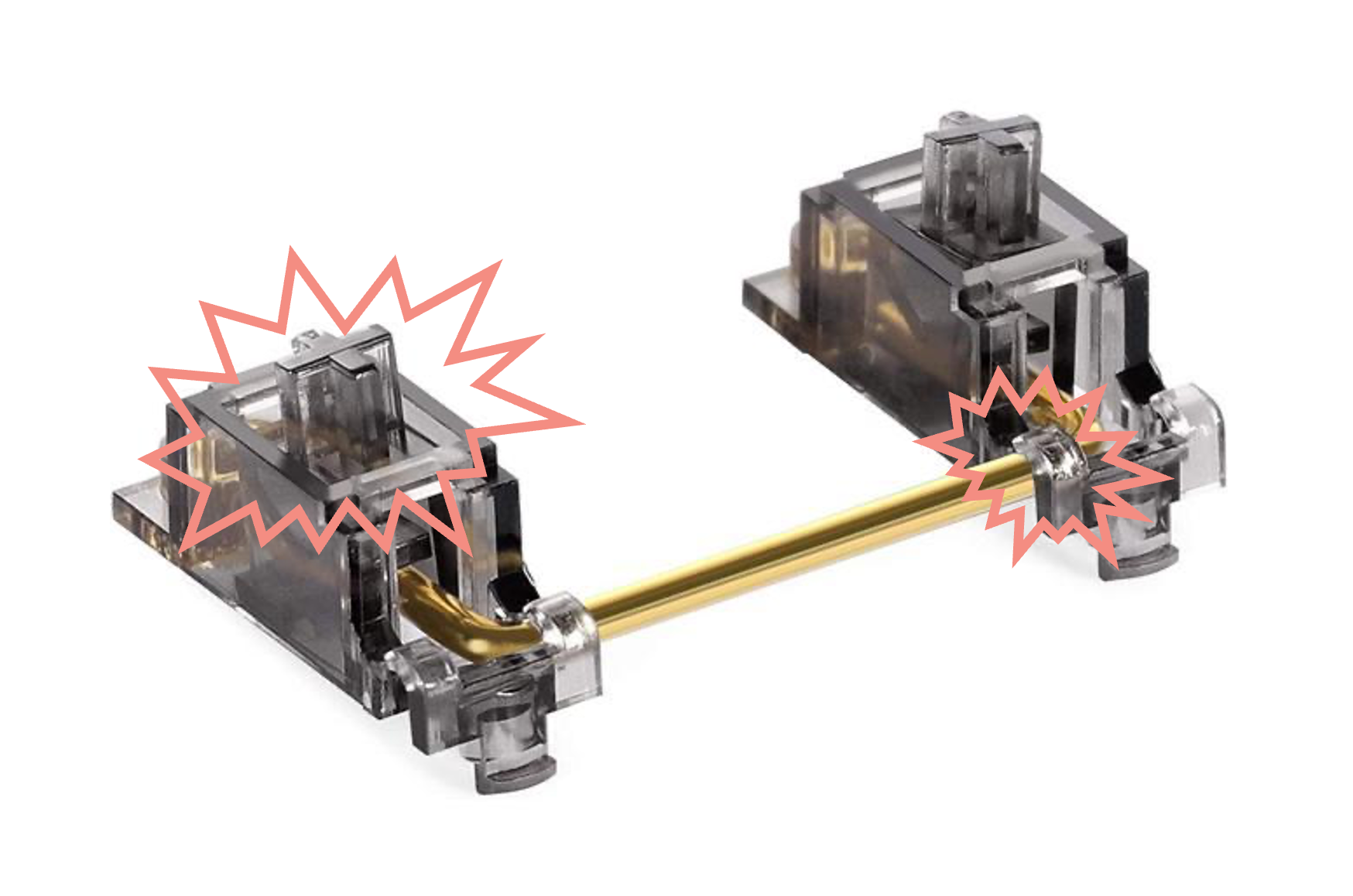 Armchair community speculation—including indeed my own in the past—has always held that the unwanted noise of stabilizers comes from "loose tolerances," with the implication that this is due to manufacturer laziness or cost optimizations. "Tolerance" is an engineering term with a real and precise meaning, but when used in this context what people generally really mean is "loose fits." We're talking here about having large gaps between the moving parts that touch each other.
