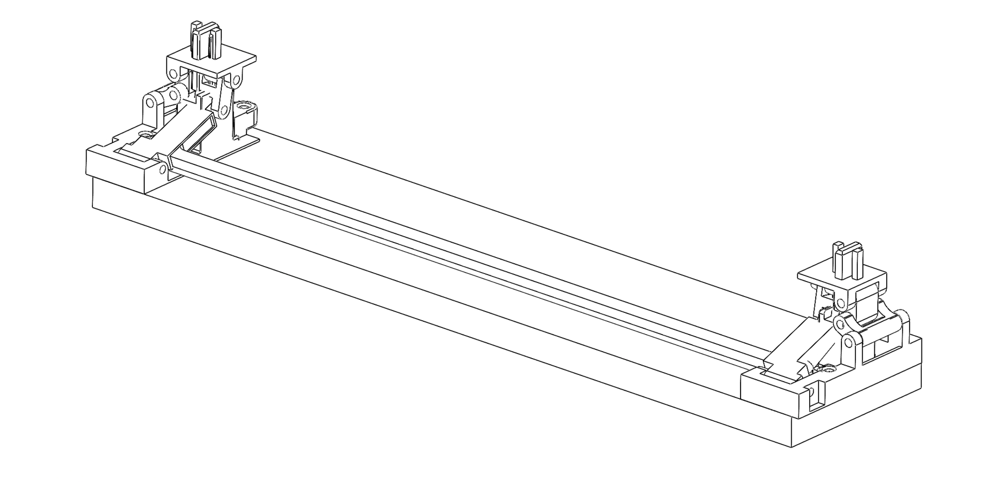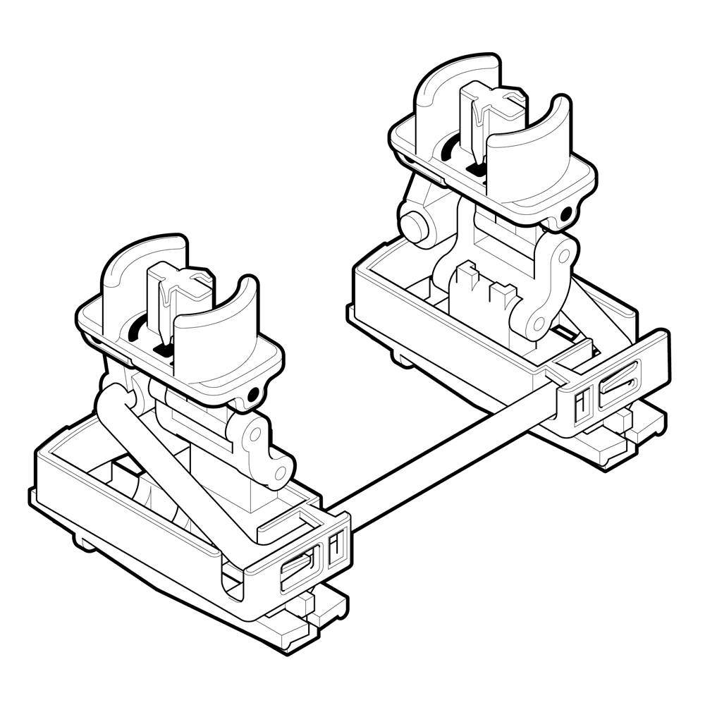A tricky thing with a perfect kinematic score is that it's hard to improve. But there is more to an optimal stabilizer than just deleting over-constraint. There remained the problem inherent in all sliding linear bearings: the bearing ratio. Quality of a sliding bearing is ultimately related to the length of the slide, but we want keyboards to be as flat as possible, which necessarily limits slider travel distance, and there is only so much we can do to escape this basic problem with a linear slider. There are also limitations in injection molding as a manufacturing process, limiting the precision (and thus tightness of fit) to which two mating plastic parts, such as the tongue and the groove, can be manufactured. These concerns left us with a still non-zero nominal gap between the sliding faces of our functional interface and thus the possibility of subtle ticking. To reach perfection and effectively zero clearances everywhere, we would need to transcend the existing stabilizer paradigm and reformulate the problem on our own terms. The Norbauer-type stabilizer does that by taking the two-dimensional problem of linear sliding and cleverly projecting it into three-dimensional space, using a set of hinge leaves that fold and nest into each other, effectively lengthening the bearing. This is its core insight. But the advantages of the pin joint architecture are many and subtle.