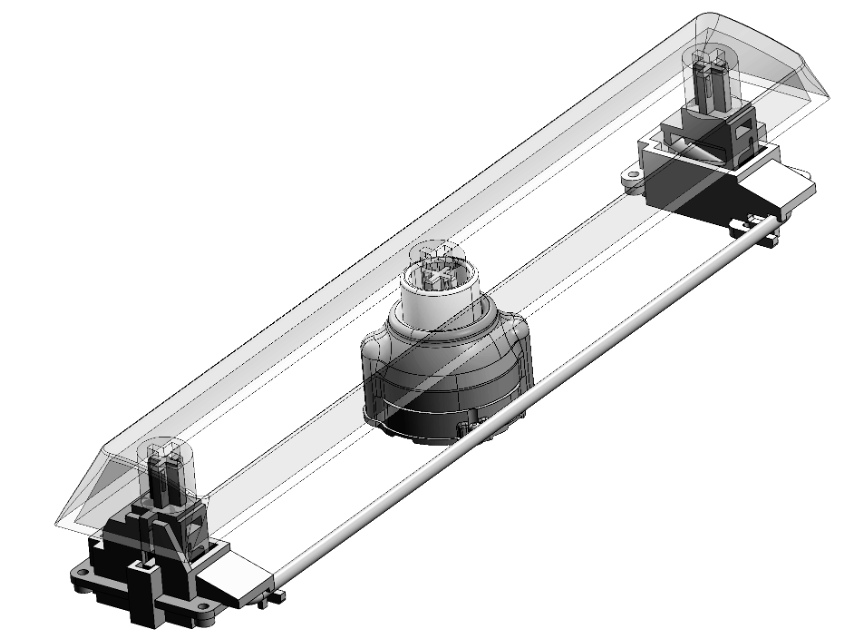 The first option was a slight modification to the existing Cherry MX paradigm that was optimized for a kinematic score of a perfect 0, primarily focused on removing over-constraints, tightening tolerances, and mitigating bearing ratio issues as much as possible. We'll call this the tongue-in-groove stabilizer, for which they presented the following concept.